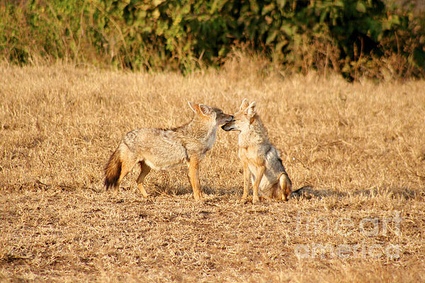 Two golden jackal mates in Ngorongoro Crater, Tanzania. Jackals are known to mate for life.