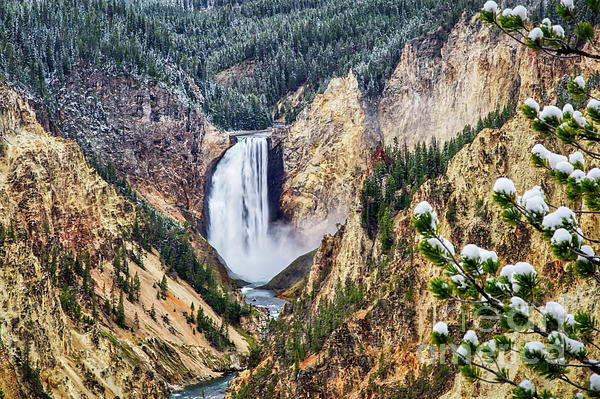 Lower Yellowstone Falls in Yellowstone national Park after the first snow of the year