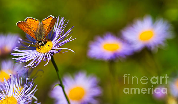 Lustrous Copper Butterfly (Lycaena cupreus) on Purple Astor. Taken in the Blue Mountains of Southeastern Washington State