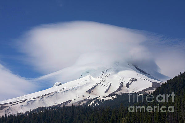 A large lenticular cloud over Mt. Hood in the early Summertime.