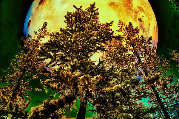 Mars (image from NASA) rising in the sky above a winter forest