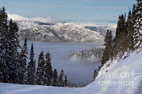 On the slopes of Whistler/Blackcomb in BC Canada above the low lying clouds/fog.