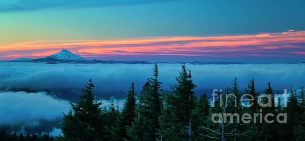 Winter sunrise looking at Mt. Jefferson from high upon Mt. Hood in the Oregon Cascades