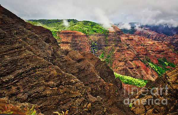 Waimea Canyon and Waipo'o Falls in the distance on the island of Kauai in Hawaii